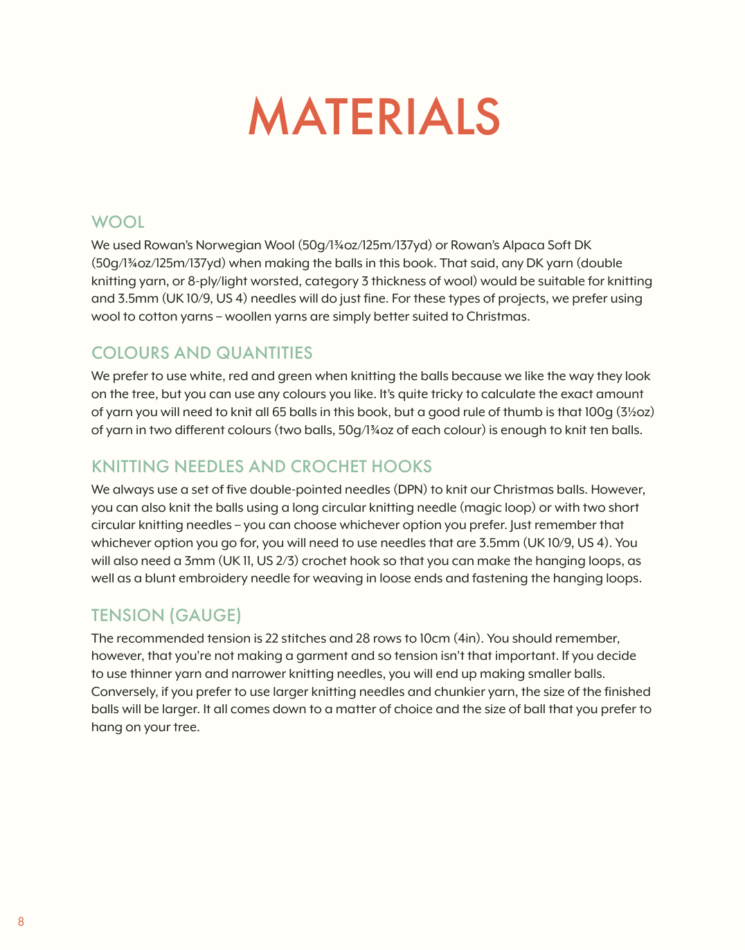 Themed collections for the 65 decorations, such as Let It Snow, featuring fir trees and snowflakes; Flora and Fauna, including holly and reindeer; and Traditional, which harks back to ski jumper design motifs and red, white and green colourways. Each of the patterns is explained by a chart; there are no complicated instructions to follow; so once you’ve mastered the basic pattern you can create any of the designs simply and easily;