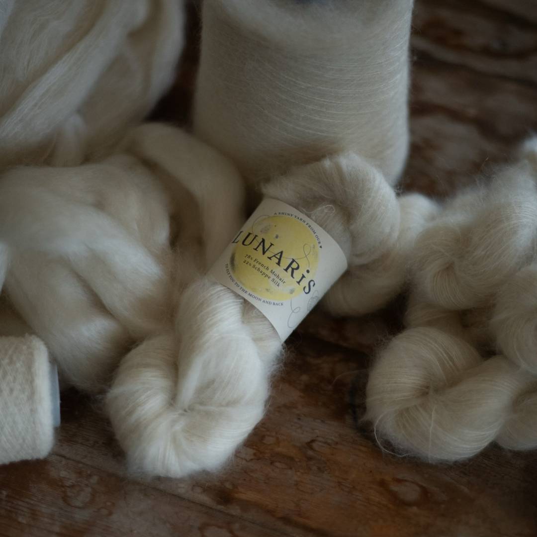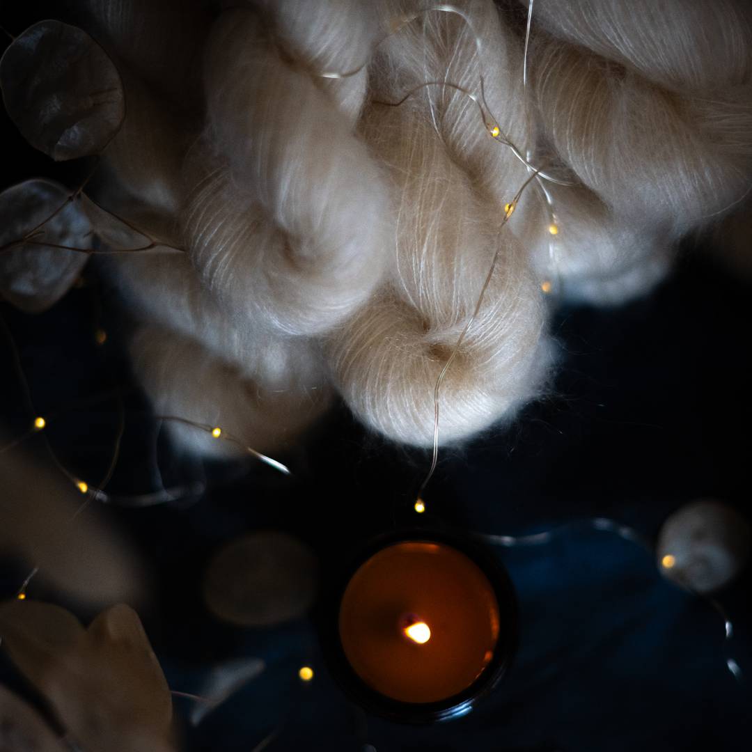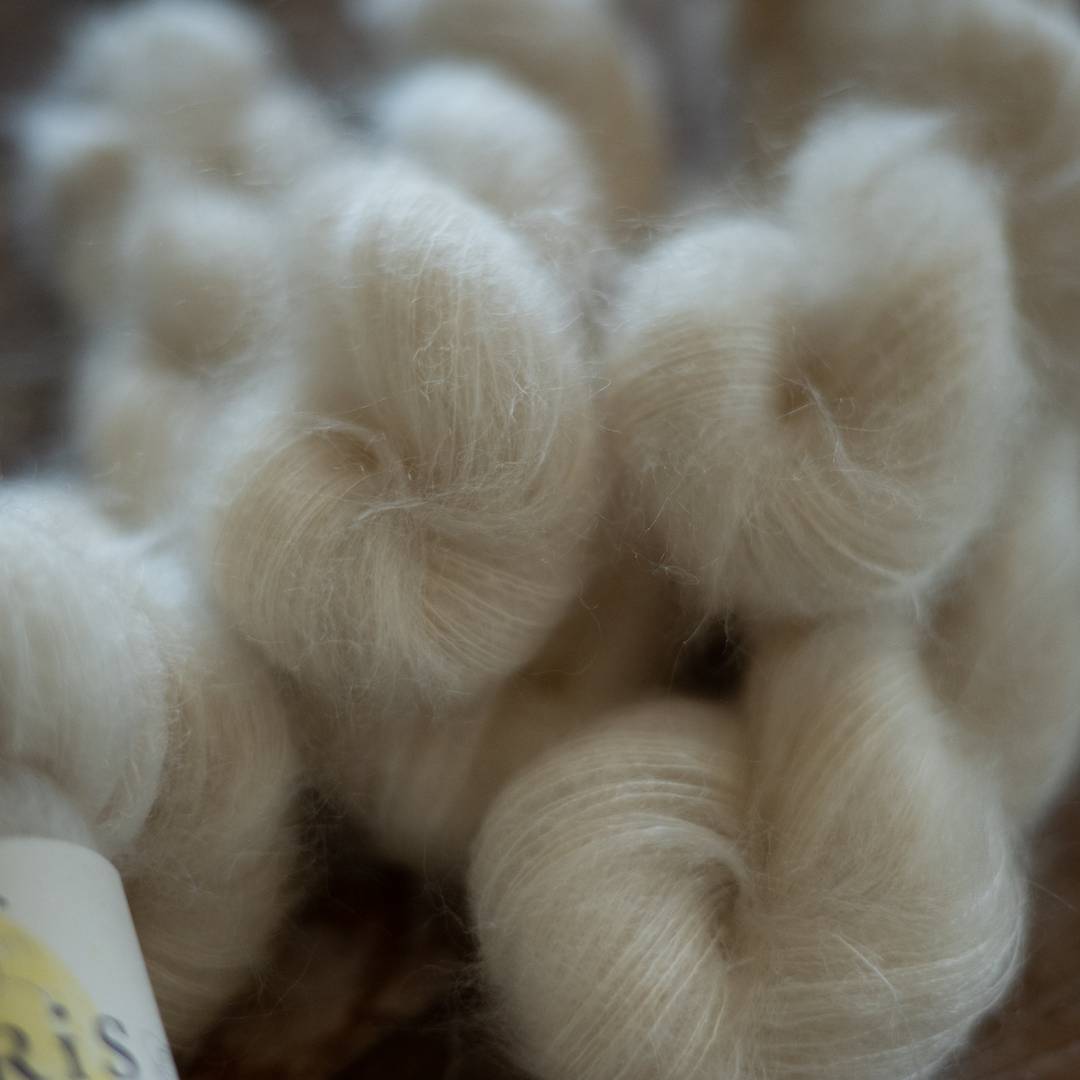 LUNARIS is a laceweight yarn made from 78% French mohair blended with 22% Schappe silk with 500m per 50g.