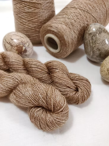 The yarn has a very light coating of conditioning oil, which helps to protect the delicate fibres and to reduce static during processing. This is easily removed by washing the finished garment, after which the yarn will 'bloom' slightly and be even softer. Gently hand wash in warm water (about 30°C) using a wool detergent, and rinse in warm water. Avoid any rapid changes in temperature, or too much movement of the garment in the water. After washing, roll the garment inside a large towel and gently squeeze (don’t wring); or machine spin inside a pillow case and allow to dry flat. Never tumble dry!