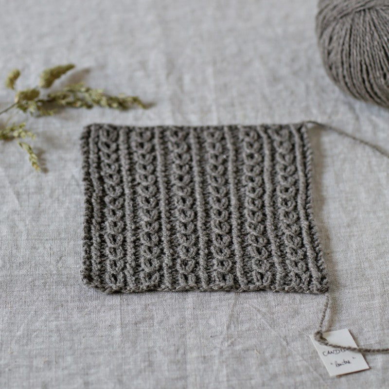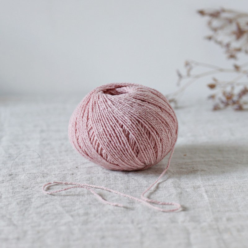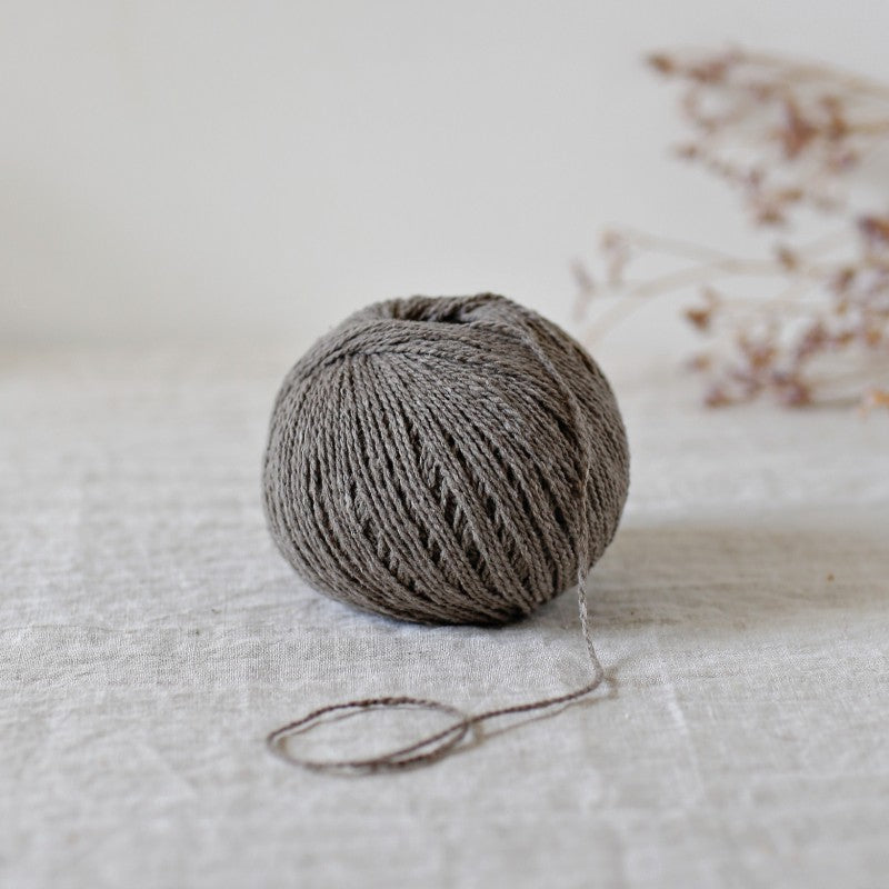 The presence of cotton gives it a little more softness, a fresher feel and more compactness than pure wool. The small cotton flecks give it a tweedy texture and create a mottled look, more or less pronounced depending on the colour. It is a rather dry-feeling yarn which, like many woolen spun yarns, gains in softness and fluffiness once washed.