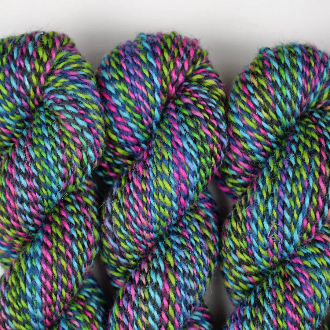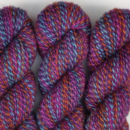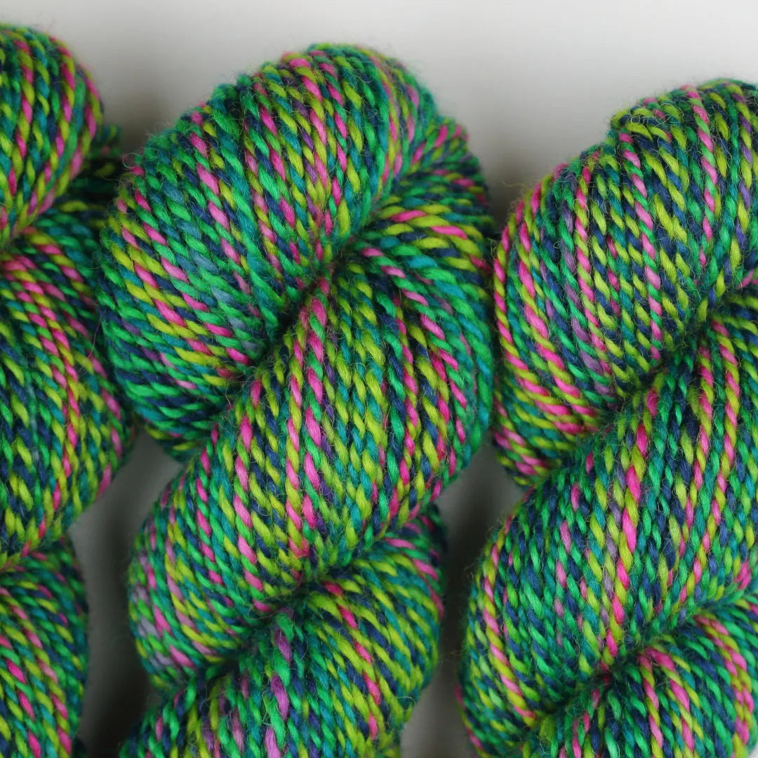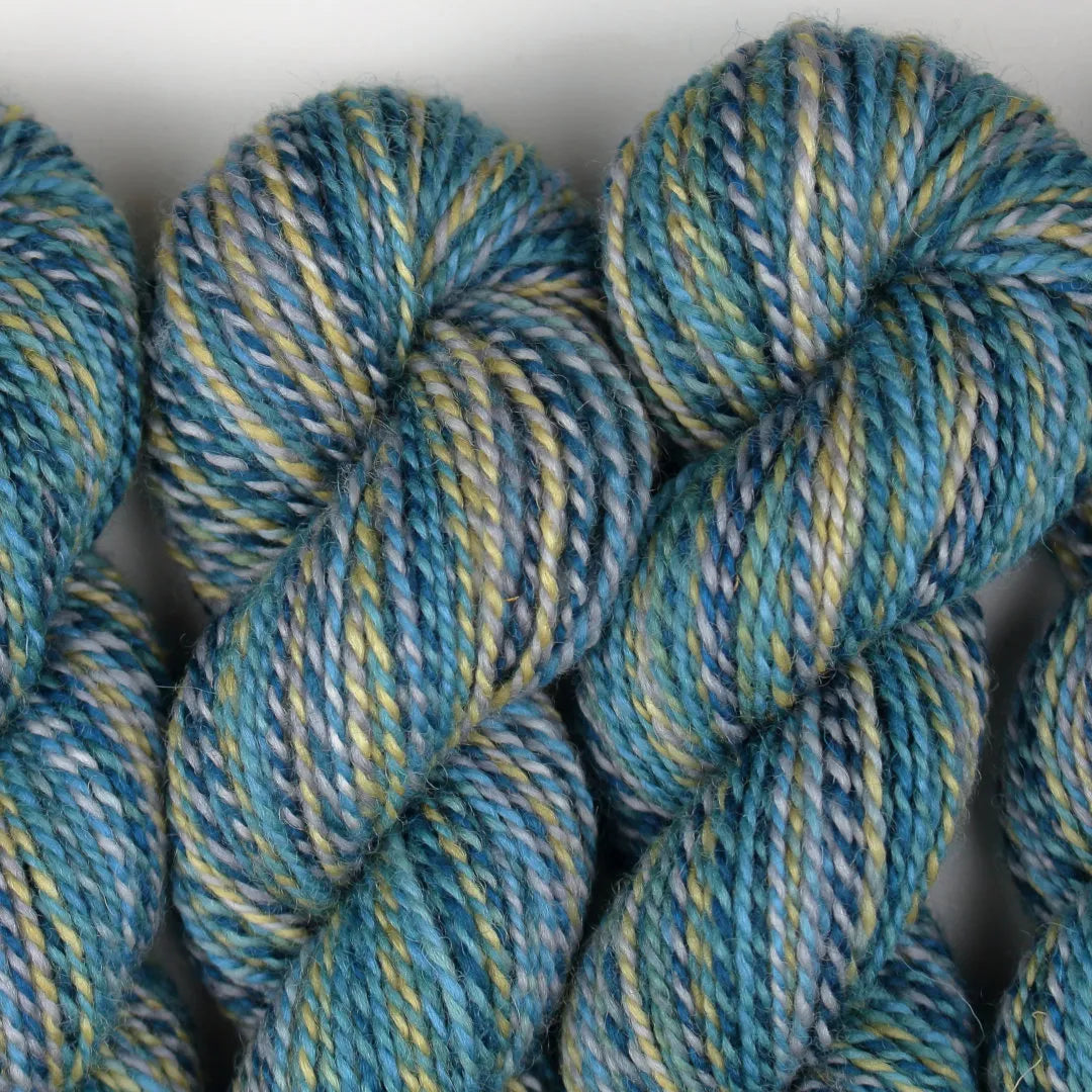 This magical hand-dyed marl will add a lot of fun and colour to your creations. Try combining skeins with each other or with semi-solids and tonals in stripes, or mosaic and stranded colourwork for some wonderful effects. This is the DK weight the 4-ply is available here.