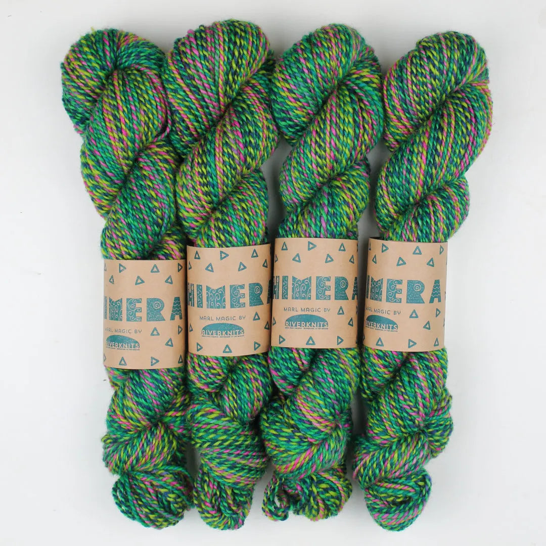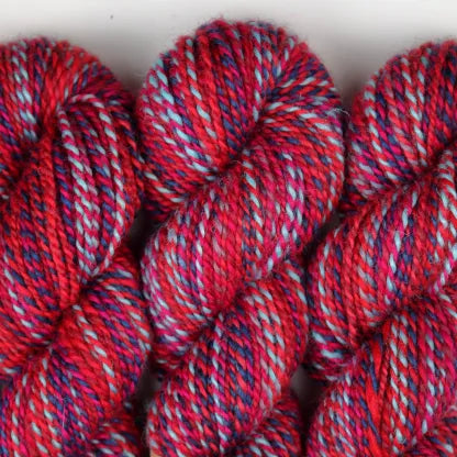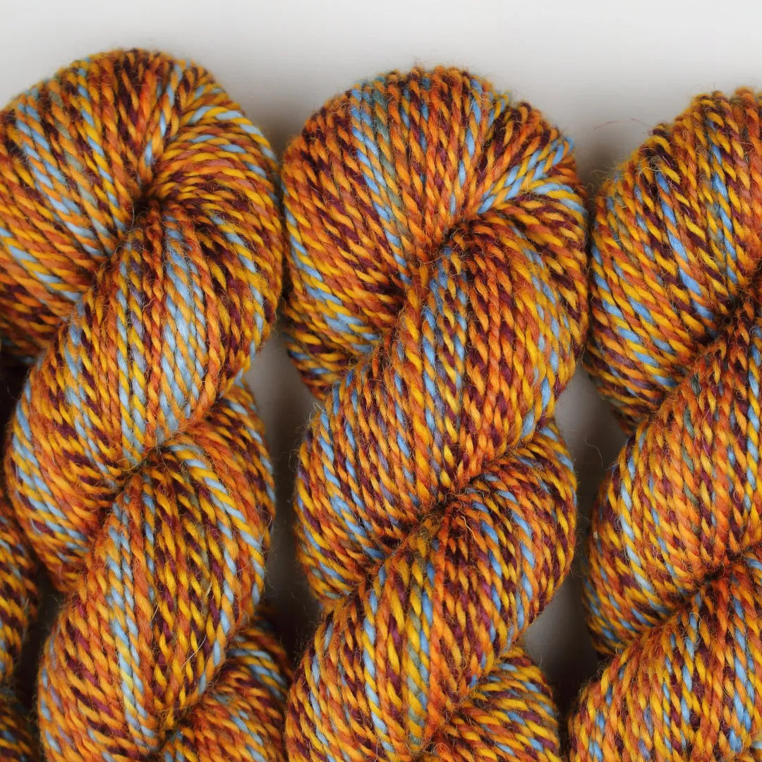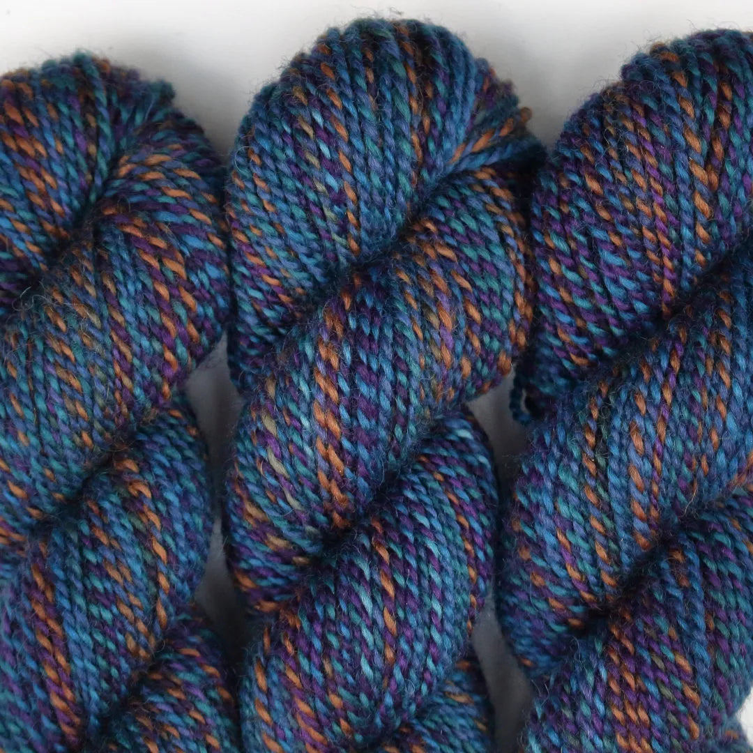 This magical hand-dyed marl will add a lot of fun and colour to your creations. Try combining skeins with each other or with semi-solids and tonals in stripes, or mosaic and stranded colourwork for some wonderful effects. This is the DK weight the 4-ply is available here.