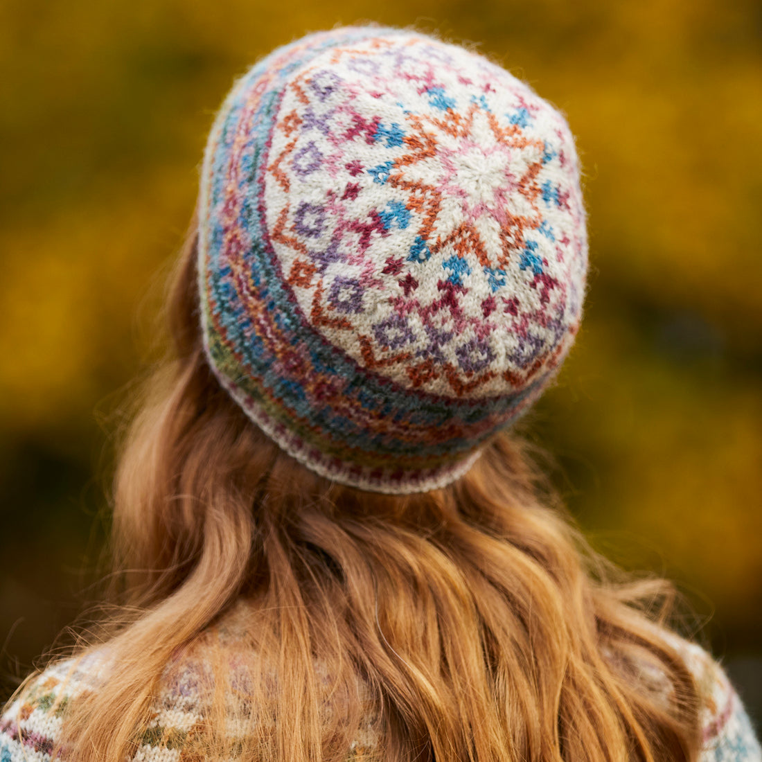 The Tarn Tam is a great Fairisle tam for both women and men from the Cumbria collection. It is knitted in the round using 11 colours. The Tarn Tam is available in two kits: Raw and Silver Birch.
