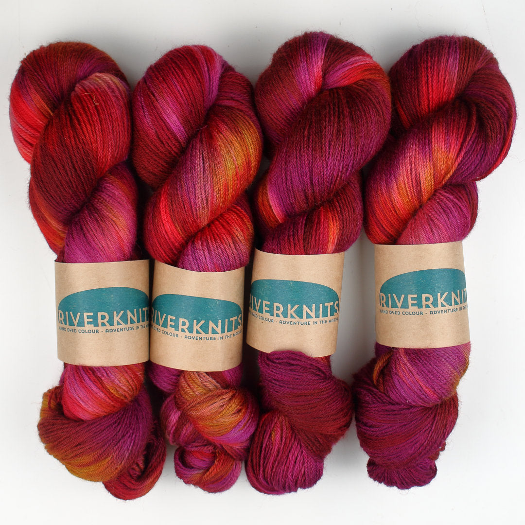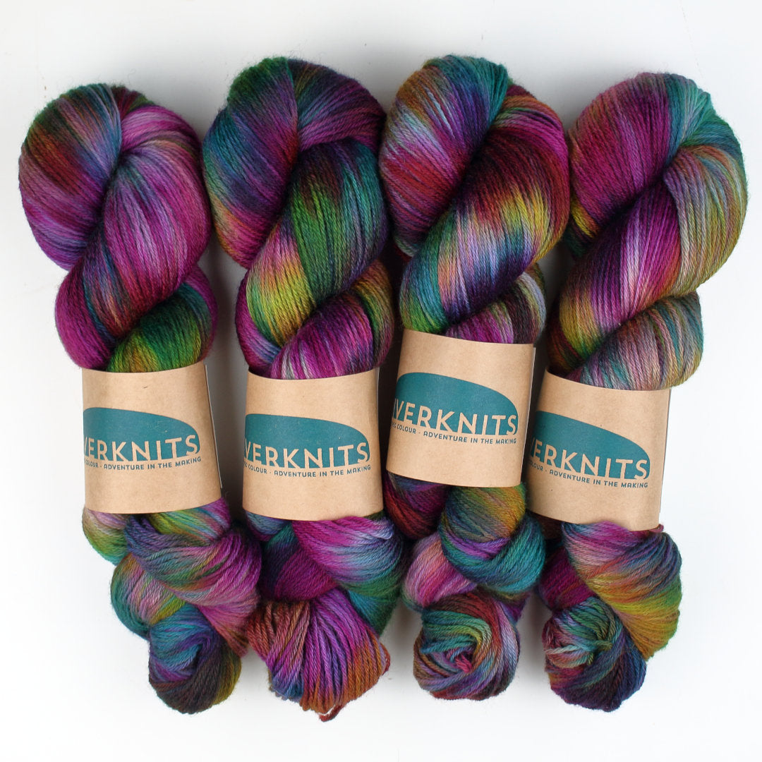 Dyed on Nene 4-ply, a 100% Bluefaced Leicester wool, spun in Yorkshire and dyed in Northamptonshire.