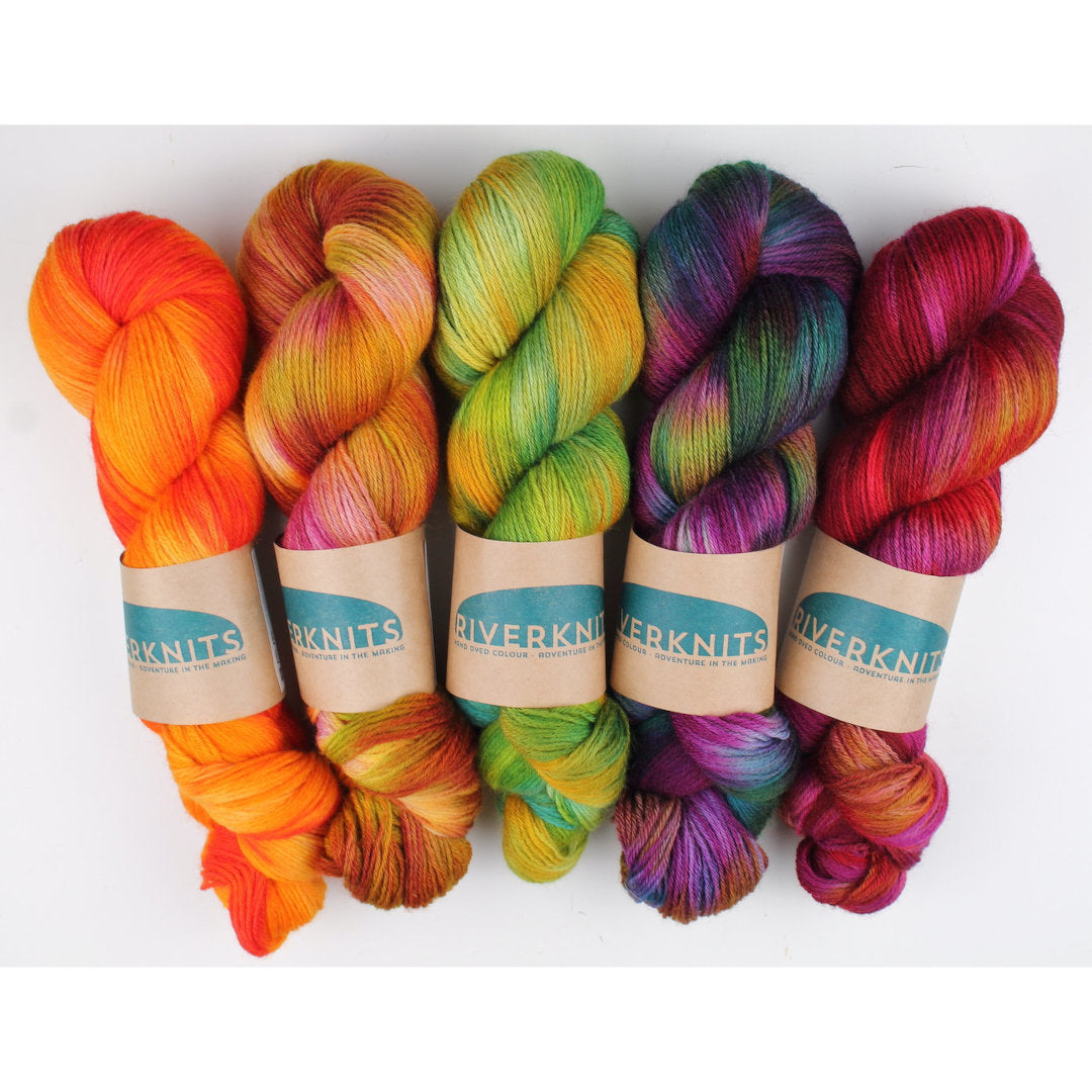 Riverknits started on Becci and Marcus' narrowboat on the River Nene. They make hand dyed colour for adventures in the making. Their range of British wool yarns come in tonal and non-pooling variegated earthy colours, influenced by the UK landscape and waterways.